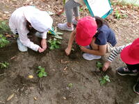 一つひとつの苗の間隔を約20センチほどあけて一本一本みんなで丁寧に植えました。