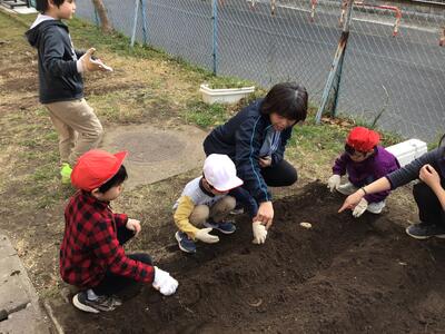 3月12日(火)に,来年度に向けてジャガイモを植えました。