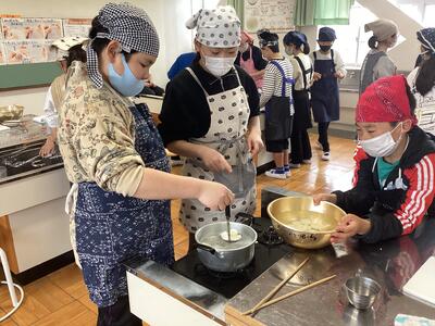 いよいよ学年末となり,家庭科の学習の「いっしょにほっとタイム」の一環で,白玉パーティーを行いました。