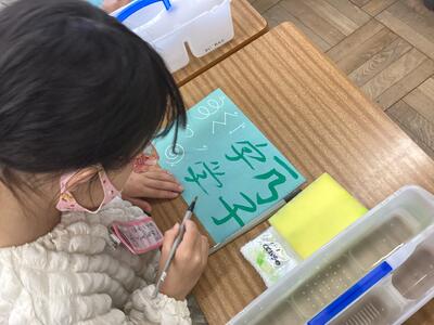 初めての水書用紙にみんな楽しそうに取り組んでいました。
