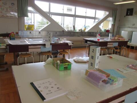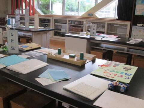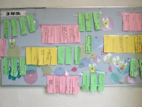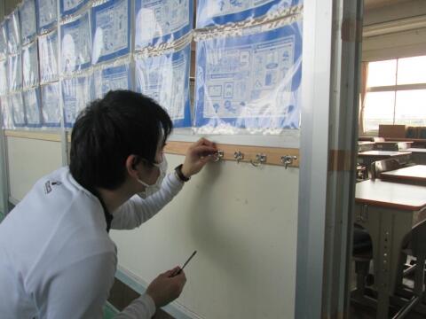 これまでに取り組んだ課題がそれぞれの教室に掲示されています。