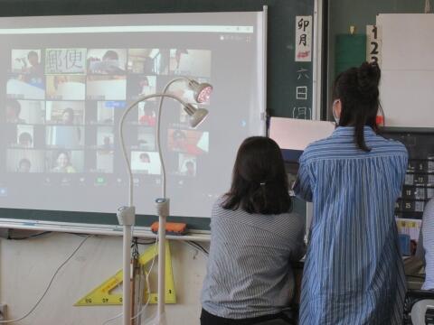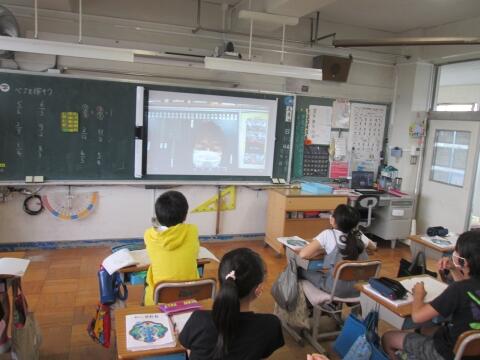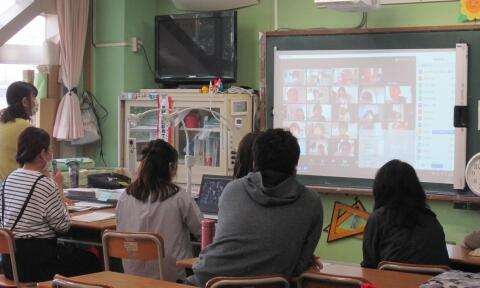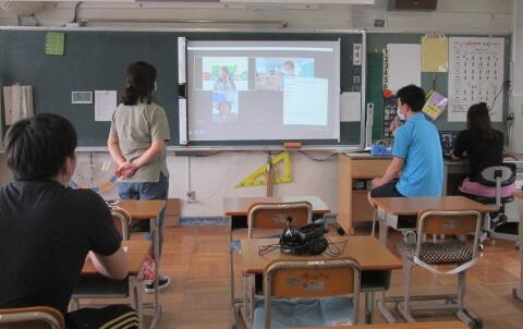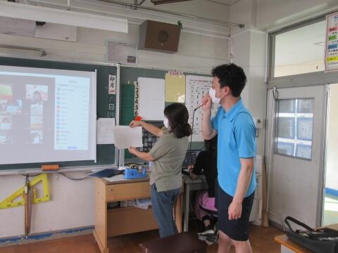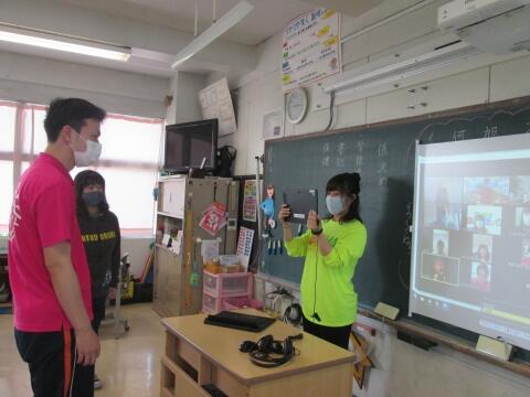 今日は,6年生の教室と職員室や在宅勤務をしている職員の自宅をつなげてのテストを行いました。