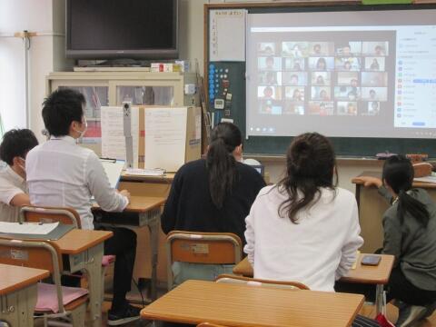 今日,6年生がクラスごとにZoomを使ってオンラインで朝の会を行いました。