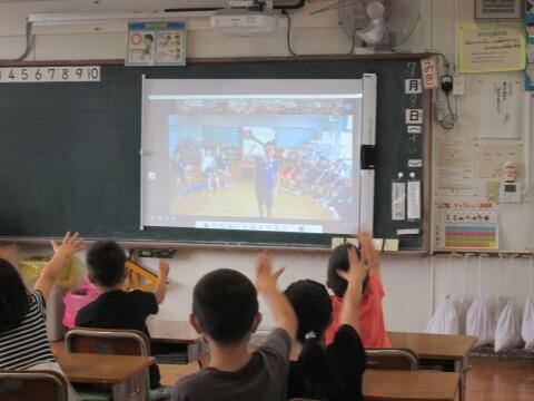 1年生は縄跳びの発表,2年生はかけ算九九を6年生と一緒に,