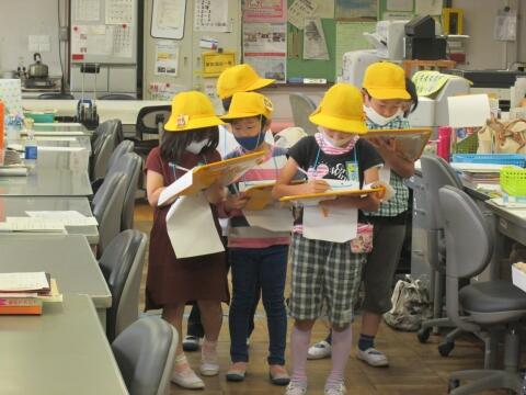 先生からは,みんなが頑張って取り組んだ観察カードや図工の課題が紹介されました。
