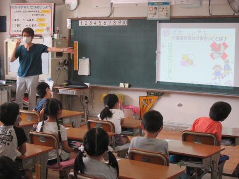 1年生やなかすこでは,授業を行う際に,教員の口の動きを見せて指導することが