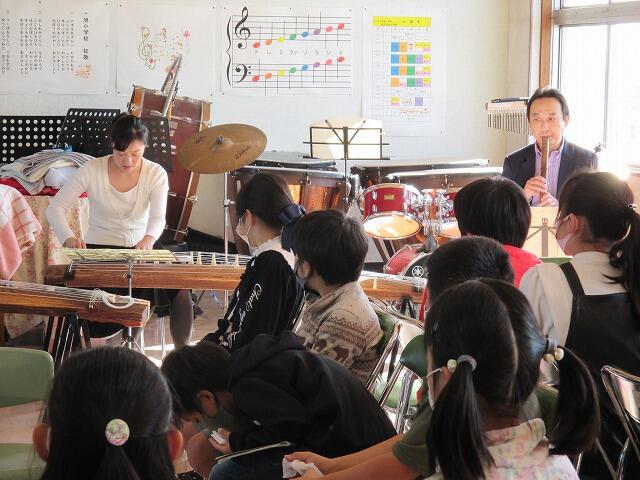 なかなか触れる機会のない伝統楽器に触れることができた,よい時間になりました。