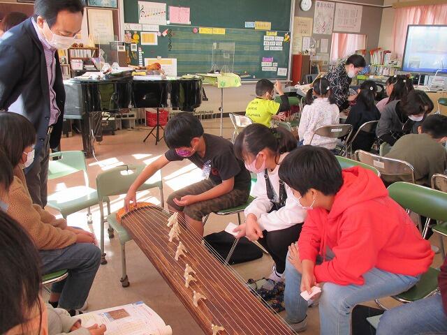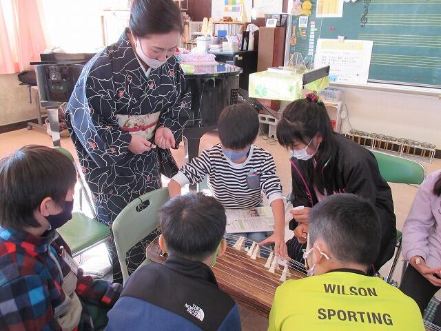 4年生のお琴体験教室を講師の先生4名を招いて,開催しました。