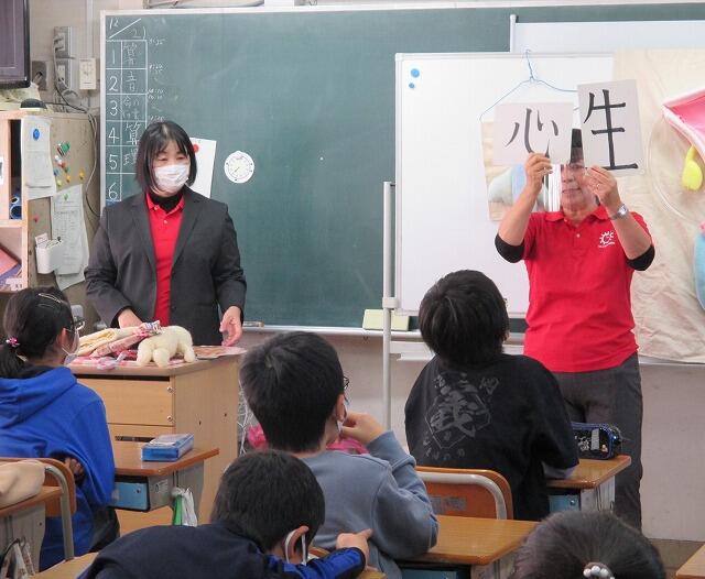 3年生は習字で「ありがとう」,4年生はボディーパーカッションの発表,