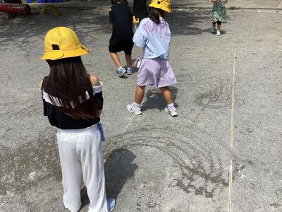 話し合いが終わった係は,外へ出て本番に向けて練習しました。