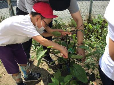 6月6日(木),なかよし・すこやか学級の子どもたちでじゃがいも掘りをしました。