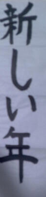 5年生が新しい年。6年生が初春の風と書きました。 (あお)