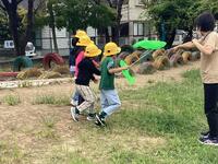 子どもたちはしゃぼん玉を夢中で追いかけていました。
