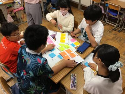 「はたらくとは,一人ひとりが役割をもって活躍すること」とお話しいただき,それぞれが得意なことを生かして思い思いのアイスを開発しました。