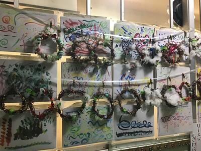4年生の図工では,「へんてこ山の物語」に取り組んでいます。これまで学習したスパッタリングや,吹き流しなどに加え,スポンジやスタンプなどを使って作品を作りました。