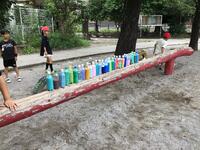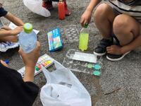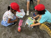 「自分の色と友達の色水を混ぜたらすごい色になった!」「カルピスみたいな色ができた!」「並べてみるときれい」と子どもたちはとても楽しそうに活動できました。
