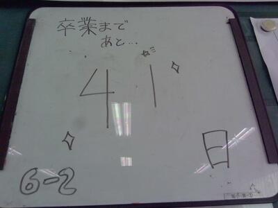卒業まで 投稿日時 : 01/15 ブログ・掲示委員会 6年生卒業まで残り41日となりました。1日1日を大切にしていかないといけませんね。「さみしい」(パル谷) {{options.likeCount}} {{options.likeCount}}