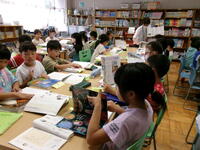 3年生は,国語の学習で図書館を活用しての学習を行っていました。「本で調べよう」という単元の学習で,もくじや索引の見方,調べ方を学んでいました。