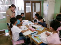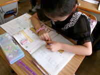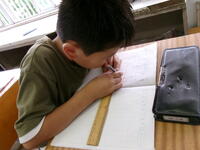 2年生は,算数の「長さ」の学習をしていました。30cmものさしを使って,メモリの読み方と線の引き方を学習していました。どの児童も真剣に取り組んでいました。