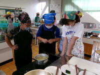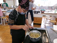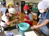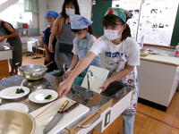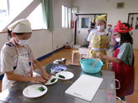 5年生の家庭科の学習では、調理実習を行っていました。初めての調理実習です。青菜をゆで、ジャガイモをゆでました。包丁を使うのが初めてという児童も多く、慎重に行っていました。子どもたちも先生もドキドキでしたが、しっかりと時間通りに行うことができました。ゆでたジャガイモとほうれん草を塩とバターで「おいしい!おいしい!」と食べていました。みんなで作って食べるとおいしいね。9月の林間学校でのカレーづくりも楽しみです。