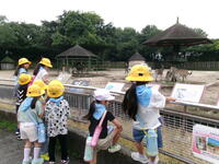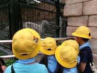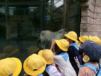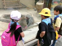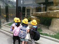 ホワイトタイガーやシマウマ、キリン、サイをグループごとに見学しました。班長を中心に友達と仲良く見学をする姿がみられました。シマウマの中に、さみしそうにしている動物がいました。名前は「アイカ」ちゃんです。シマウマたちが餌を食べているのを一歩後ろからジーッとみています。説明を読んでみるとキリンとは仲良しだけれど、シマウマとはあまり仲良くなく、シマウマの様子を伺いながら餌を食べているようです。動物の世界でそんなことがあるのかと・・・同じ場所にいるのだから、みんな仲良くして欲しいなと思いました。旭小の1年生は、みんな仲良く見学していました。