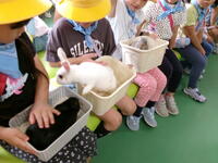 ふれあいコーナーでは、係のお姉さんの説明を良く聞いて、みんなとても上手に、優しくに動物たちとふれあっていました。ウサギ・モルモット・ひよこと順番にふれあいました。子どもたちの優しさに動物たちも喜んでいるように思えました。