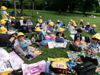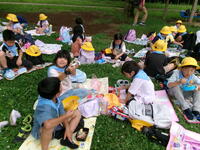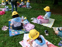 お弁当の時間はもちろんみんなニコニコでした。「おいしい!」「全部食べるよ」「帰ったらありがとうっていおう」
