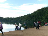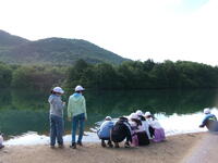 朝の散歩に湯の湖に来ました。とても良い天気です!この景色があまりに素敵なので、予定にはありませんでしたが、急遽クラス写真を撮ることにしました。大自然の素晴らしさを満喫しました。
