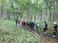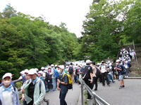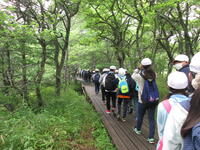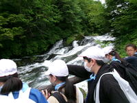 修学旅行1日目。東照宮見学で少し雨に降られましたが、グループごとに協力してマナーを守りながら見学をすることができました。また、戦場ヶ原ハイキングも雨上がりで心配していましたが、予定通り行うことができました。「ホーホケキョ」と鳴くウグイスの声や様々な植物、きれいな空気に心洗われながら自然を満喫することができました。後半のぬかるみに苦戦しましたが、誰も転んだり、怪我をすることもなく、湯滝に到着しました。間近で見る湯滝に感動し、マイナスイオンをあびて、疲れが吹き飛んだ様子でした。(校長 小田川)