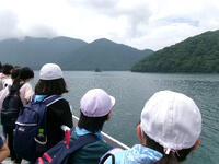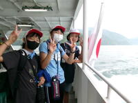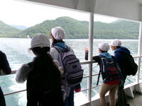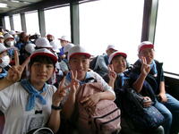 菖蒲が浜から遊覧船に乗りました。船は、昨年から新しくなったきれいな船でした。3階まであり、思い思いの場所で過ごしていました。