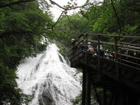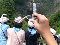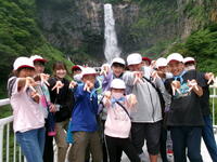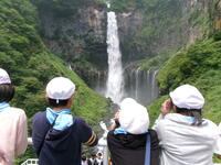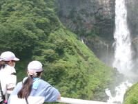 華厳の滝の見学です。「華厳の滝」は、栃木県奥日光にある日本有数の滝です。滝の落水量毎秒2.5立方メートルと高低差97メートルという壮大な規模がうむ迫力は、まさに「日本三大名爆」の名にふさわしい!見学時は運良く空いていて、ゆっくり見学ができました。