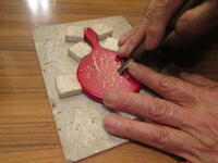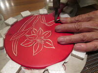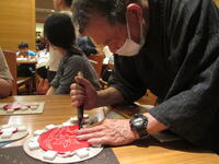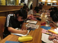 夕食後は日光彫体験をしました。自分で考えたデザインで丁寧に彫り進めていました。