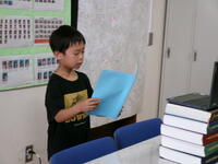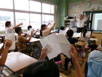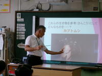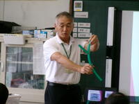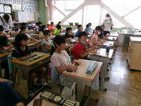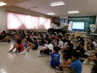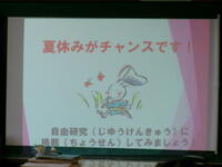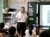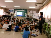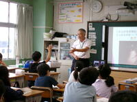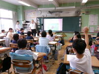 もうすぐ夏休み。夏休みの宿題の一つに理科の自由研究があります。4年生では,教育委員会指導課の河村先生を講師に迎え「自由研究のおもしろさ」と「取組のヒント」を河村先生の体験談をもとに,お話をしていただきました。河村先生が少年だったころにトンボを捕まえるためにクモの巣を集めたこと・・・研究を進めるうえでのヒントをたくさん教えていただきました。河村先生,ありがとうございました。