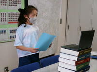 1学期の終業式を行いました。連日暑さが続いており,熱中症対策の為,オンライン終業式としました。全校で歌う校歌の指揮者,1学期頑張ったことを話してくれた2年生と5年生の代表の児童,みんな堂々として立派でした!