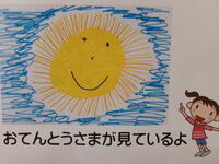 ☀昔の人は,子どもがなまけたり悪いことをしたりしたときに「おてんとうさまがみているよ」と言って叱りました。「お天道様(おてんとうさま)」というのは太陽のことですが,昔の人は空にある太陽を神様のように思っていて,お天道様というのは,何でも知っているのだと思ったのかもしれません。夏休みは,先生の目も届きませんし,家の人の目も届きにくいことがあるかもしれません。でも,お天道様(おてんとうさま)は,ちゃんと見ていますよ。自分でしっかり考えて,良い夏休みを過ごした子には,お天道様(おてんとうさま)は,天からご褒美をくれるかもしれませんよ。ぜひ,自分の弱い心にうち勝ち,大きく成長する夏休みにしましょう!2学期の始業式に,全員そろって元気な笑顔で会えることを楽しみにしています。(校長 小田川)