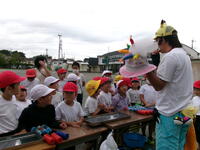 1年生の生活科の学習で,シャボン玉遊びを行いました。講師に石井悟先生をお招きして,とても楽しい体験をすることが出来ました。