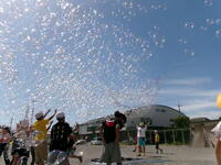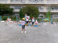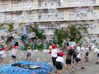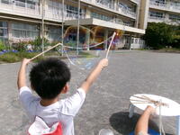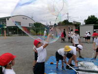 昼休みは,1年生だけでなく他の学年までシャボン玉遊びを体験させていただきました。高学年も交じって,みんな夢中です!