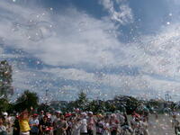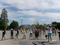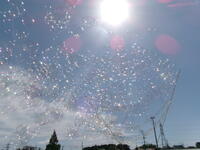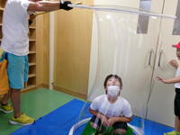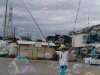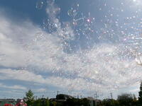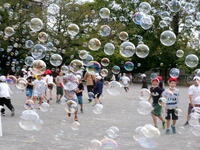 石井先生の巧みな技と工夫と雰囲気づくり,たくさんのシャボン玉を作る道具たちそして特別なシャボン液によって,子ども達のワクワクな気持ちがずーっと続いた1時間でした。道具もたくさん使わせてもらって体験することができ,自分の身体がシャボン玉の中にすっぽり入ってしまう体験ができたりなど,楽しい1時間でした。