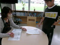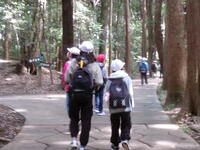 1日目の最初は,「この木何の木?」という活動でした。地図を手にグループごとに敷地内の木をさがし,その特徴から何の木かをあてるものでした。みんなで相談し,協力して全グループ,時間通り戻ってくることが出来ました。