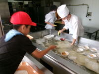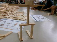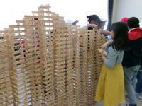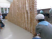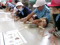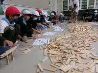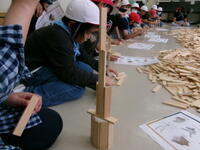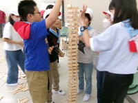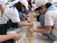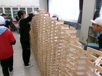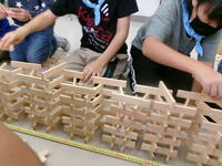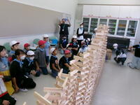 午前中は,3つの活動をクラスごとに行いました。ヘルスバレーボール(体育館)→カプラ(創作室)→プラネタリウム鑑賞。カプラは,初めての体験でしたが,木の棒を組み合わせて形を作りました・・・が,なかなか難しい!一人一人作る活動の後は,クラス全員で「ナイアガラの滝」を作り上げたクラスもありました。集中して,協力しないと出来上がりませんが,見事に完成したクラスもありました。途中で崩れてしまったクラスも,きれいに崩れていく様子を拍手で見守るなど,楽しく活動することが出来ました。