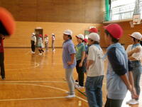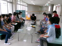 2日目の朝,保健係が部屋のメンバーの健康観察を行い,検温した結果をまとめて川手先生に報告しました。全員元気でした。その後,シーツをたたみ,部屋の掃除を行い,使った場所をきれいにしました。また,活動班のリーダー会議を行い,1日の連絡事項を確認し,班のメンバーに伝えました。