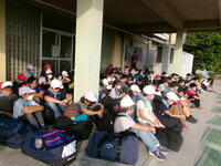林間学校のスローガンは「3つの目標を達成し,楽しい林間学校にしよう」でした。3つの目標とは・・・挨拶,時間,規律です。出発の会の実行委員のあいさつでもみんなで確認をしていました。この林間学校で,「成長した姿を見せましょう」と立派に話をしてくれました。