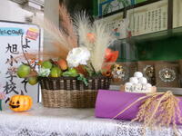 給食だけでなく,学校の職員玄関も秋に模様替えです。今日のお月見(満月)の雰囲気を演出しました。