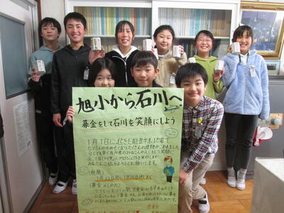 この募金活動で終わりという事ではなく,今後も復興に向けて「自分達が出来ることは何か」を考えて,~旭小から石川へ~思いを寄せ続けていきたいと思います。(校長 小田川)