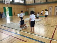 前転や後転など基本的な技から発展技まで,自分の目標に向かってそれぞれの場で練習します。