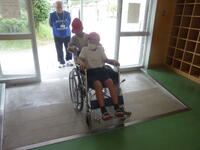 ジグザグの道やスロープ,段差などのあるコースを実際に乗って,押して体験した4年生。楽しかったけど怖さもあった,車いすで自走している人たちはすごい,これからは困っていそうな人を助けられそうなど,多くのことを学んだとても貴重な体験になりました。