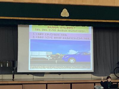 お話を聞いたり,動画を見たりして交通安全について学びました。