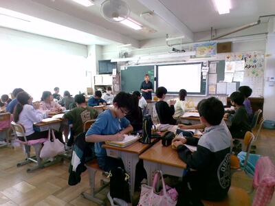 図書の授業で,貸出の後に教室でワークショップを行いました。