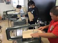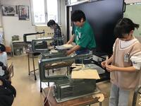 家庭科のミシン縫いの学習に続いて,機械を使った作品づくりということで,けがに注意して慎重に取り組む姿が見られました。