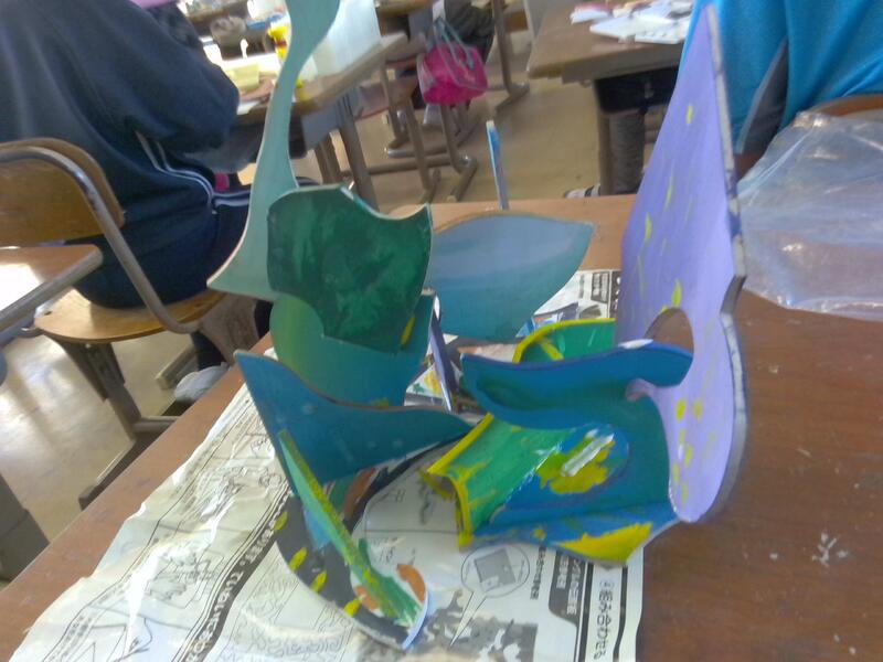 5年生は今、電動糸のこで木の板を切って、組みたてるということをしています。